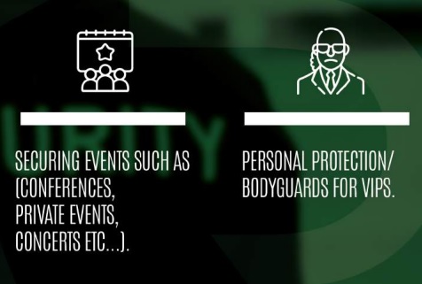 In Royal for security services we provide: 1- Security guards , lady guards, armed or unarmed officers ,bodyguards .